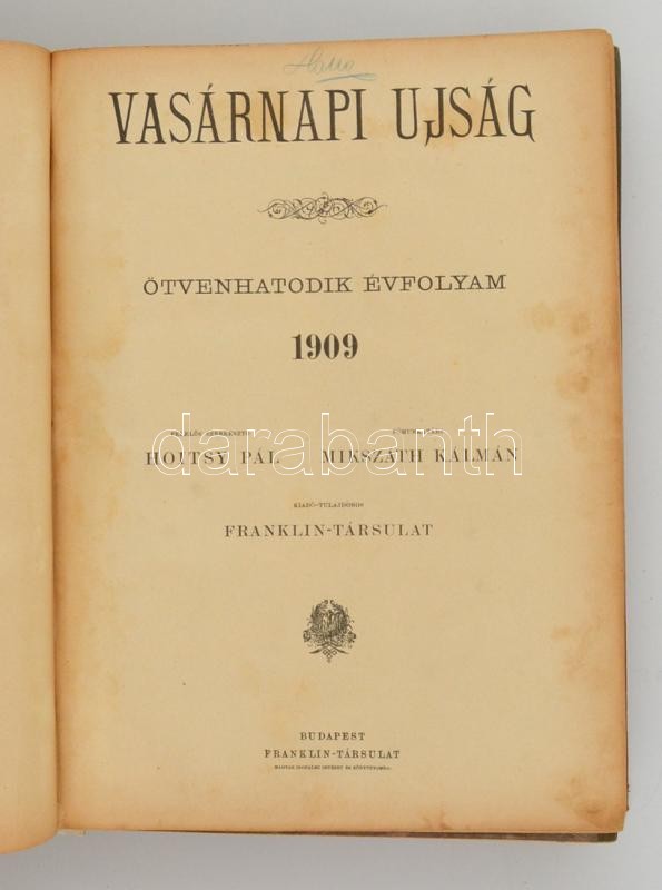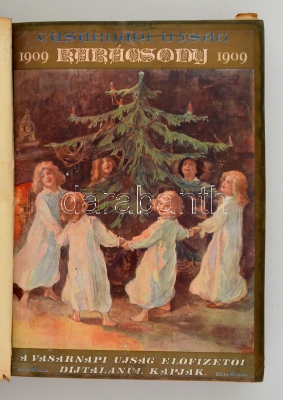 1909 A Vasárnapi Újság teljes évfolyama bekötve, kissé megviselt, fest... https://www.darabanth.com/de/297-Fernauktion/297.0/Andere-Sammelgebiete/Drucksachen~200029/1909-A-Vasarnapi-Ujsag-teljes-evfolyama-bekotve-kisse-megviselt-festett-egeszvaszon-kote~II1591107