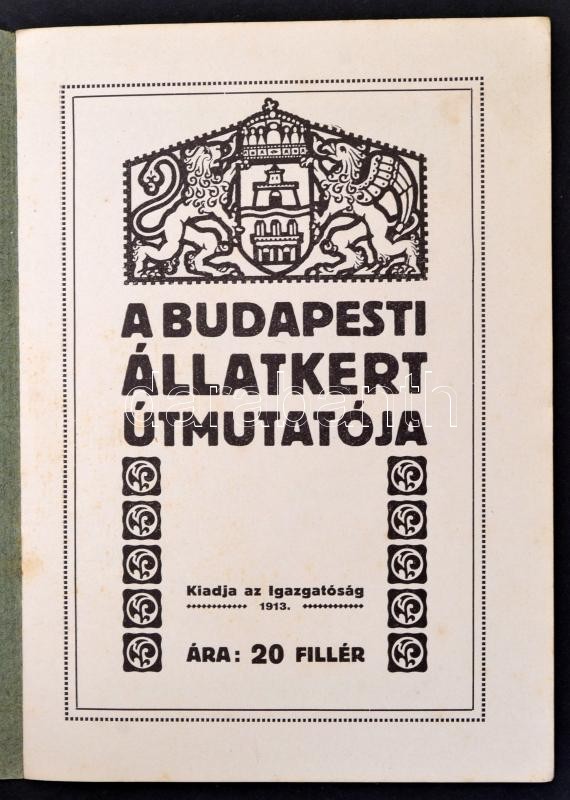 1913 Budapesti Állatkert Rövid Útmutatója. Bp., Igazgatóság, 8 p.+1 t. https://www.darabanth.com/de/297-Fernauktion/297.0/Andere-Sammelgebiete/Drucksachen~200029/1913-Budapesti-Allatkert-Rovid-Utmutatoja-Bp-Igazgatosag-8-pplus1-t~II1585992