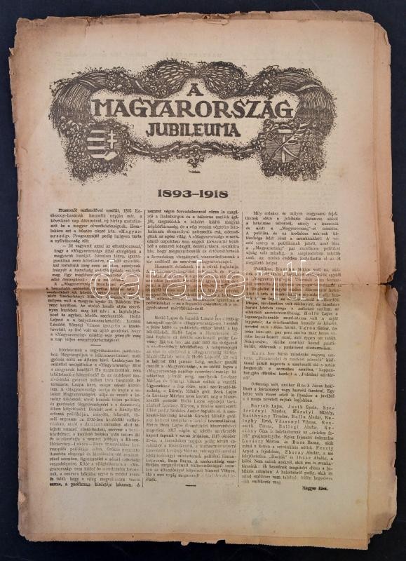 1918 A Magyarország című újság jubileumi kiadása (1893-1918) https://www.darabanth.com/de/297-Fernauktion/297.0/Andere-Sammelgebiete/Drucksachen~200029/1918-A-Magyarorszag-cimu-ujsag-jubileumi-kiadasa-1893-1918~II1586484