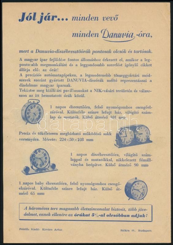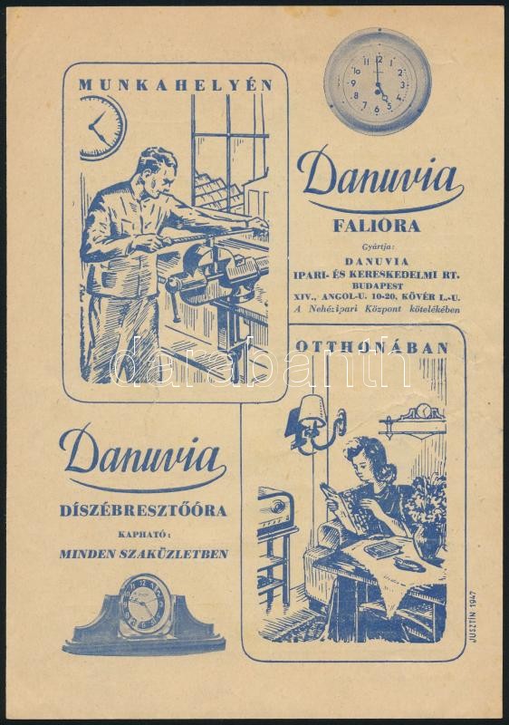 cca 1940 Danuvia falióra reklámnyomtatvány / Clock advertising https://www.darabanth.com/de/297-Fernauktion/297.0/Andere-Sammelgebiete/Drucksachen~200029/cca-1940-Danuvia-faliora-reklamnyomtatvany-Clock-advertising~II1584848