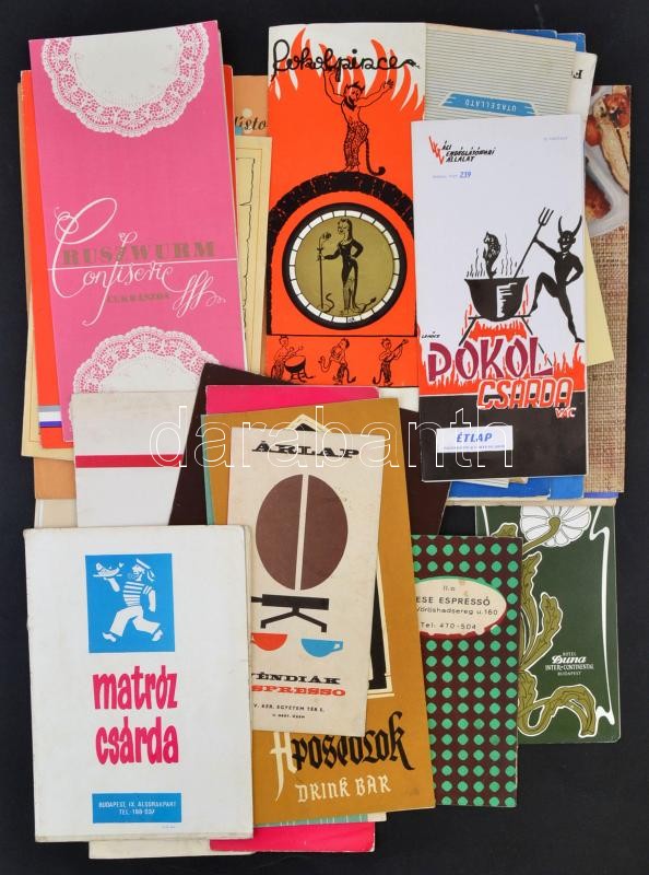 cca 1970 32 db különböző étlap (Pokol Csárda, Pokolpince, Kátai Tölgye... https://www.darabanth.com/de/297-Fernauktion/297.0/Andere-Sammelgebiete/Drucksachen~200029/cca-1970-32-db-kulonbozo-etlap-Pokol-Csarda-Pokolpince-Katai-Tolgyes-Csarda-UtasellatC3~II1589562