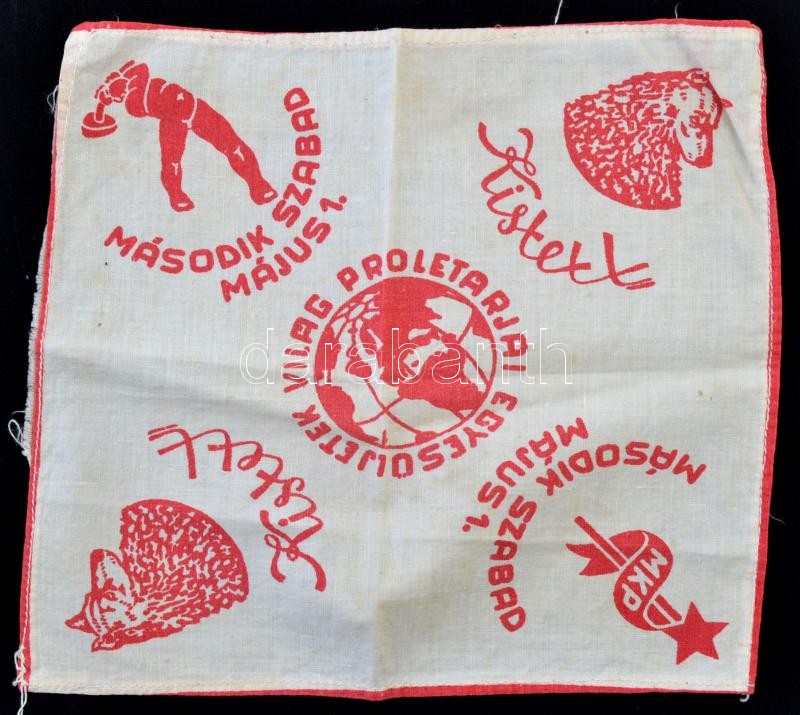 1946 Szocialista integetőkendő. Második szabad május 1.-re készült int... https://www.darabanth.com/de/297-Fernauktion/297.0/Andere-Sammelgebiete/Flohmarkt~200014/1946-Szocialista-integetokendo-Masodik-szabad-majus-1-re-keszult-integetokendo-21x23-cm~II1586515