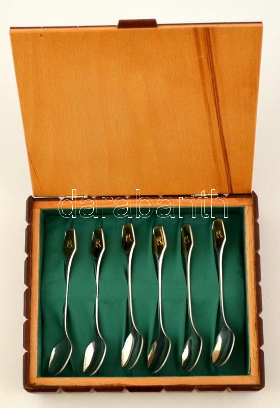 Beschreibung: 6 db-os díszes, jelzett kanál szett fa dobozban