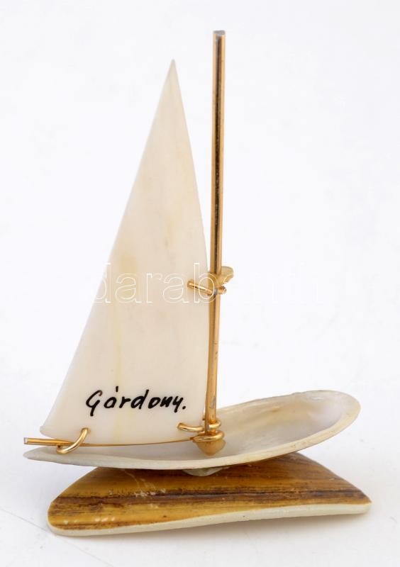 Gárdony feliratú kagyló vitorláshajómodell asztalidísz, 6x8 cm. https://www.darabanth.com/de/297-Fernauktion/297.0/Andere-Sammelgebiete/Flohmarkt~200014/Gardony-feliratu-kagylo-vitorlashajomodell-asztalidisz-6x8-cm~II1587102