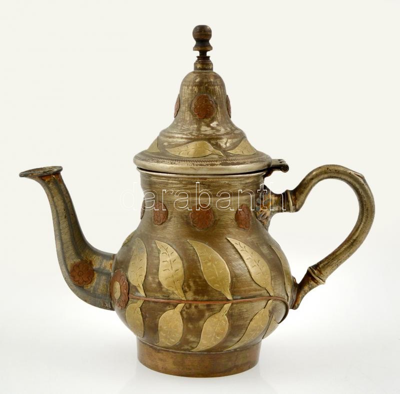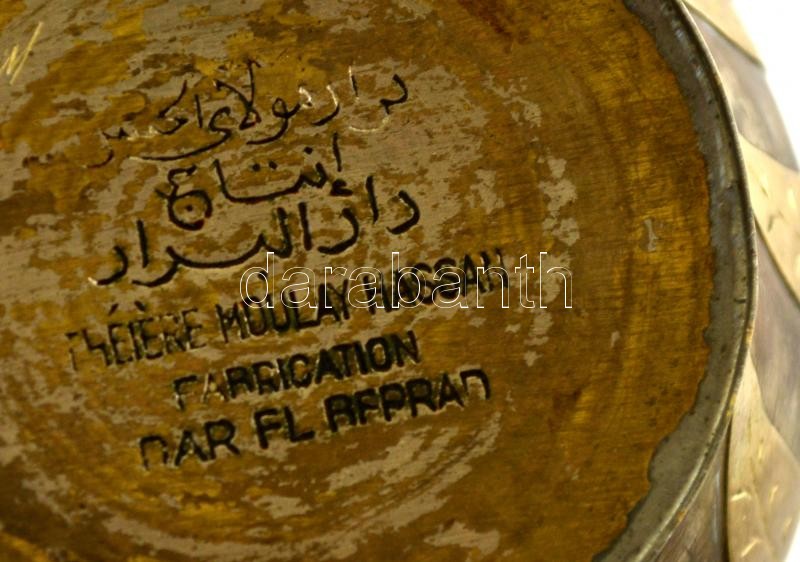 Théiére Moulay Hassan réz kiöntő, sárga és vörös réz rátétekkel, jelze... https://www.darabanth.com/de/297-Fernauktion/297.0/Andere-Sammelgebiete/Flohmarkt~200014/Theiere-Moulay-Hassan-rez-kionto-sarga-es-voros-rez-ratetekkel-jelzett-m21-cm~II1583171