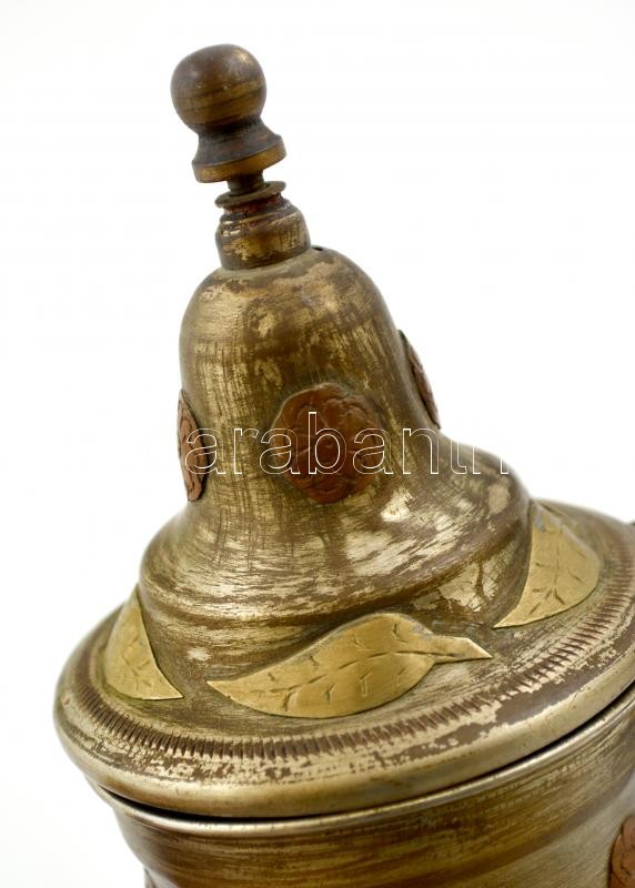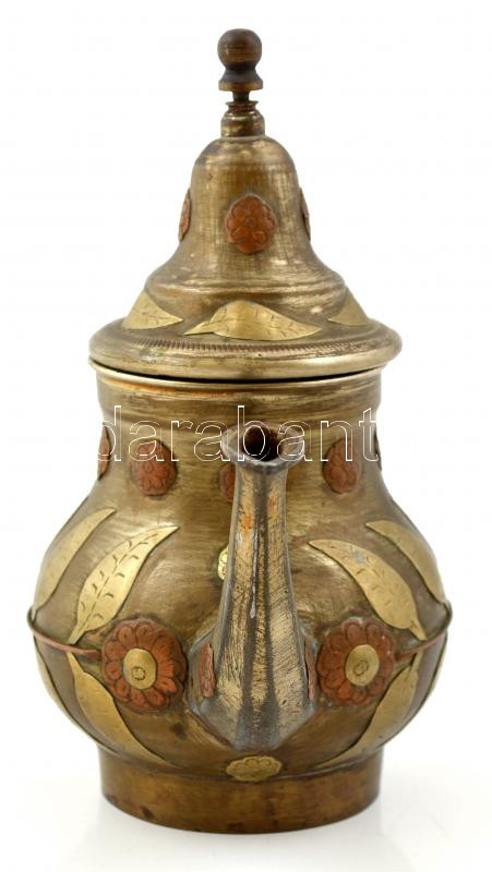 Beschreibung: Théiére Moulay Hassan réz kiöntő, sárga és vörös réz rátétekkel, jelzett, m:21 cm