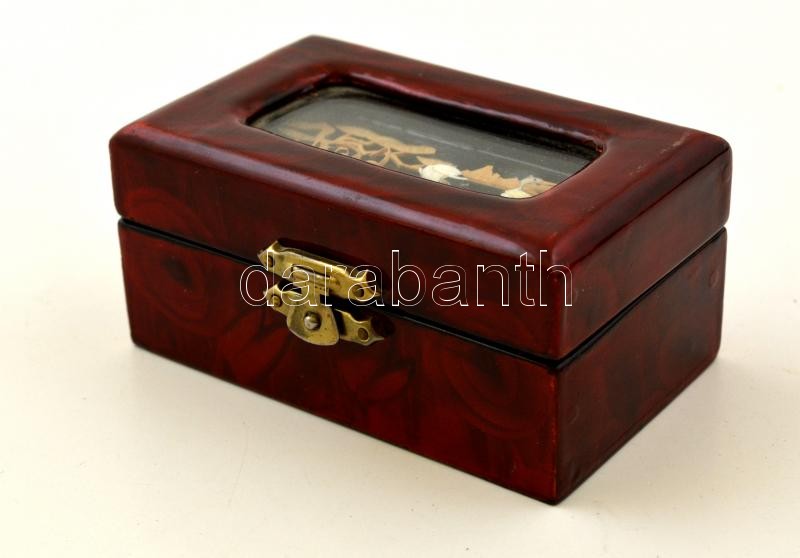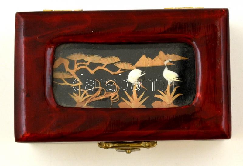 Beschreibung: Vietnami gólyás jelenet (parfából) üveg vitrines dobozkában, 10×6 cm