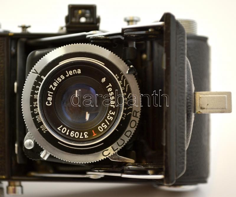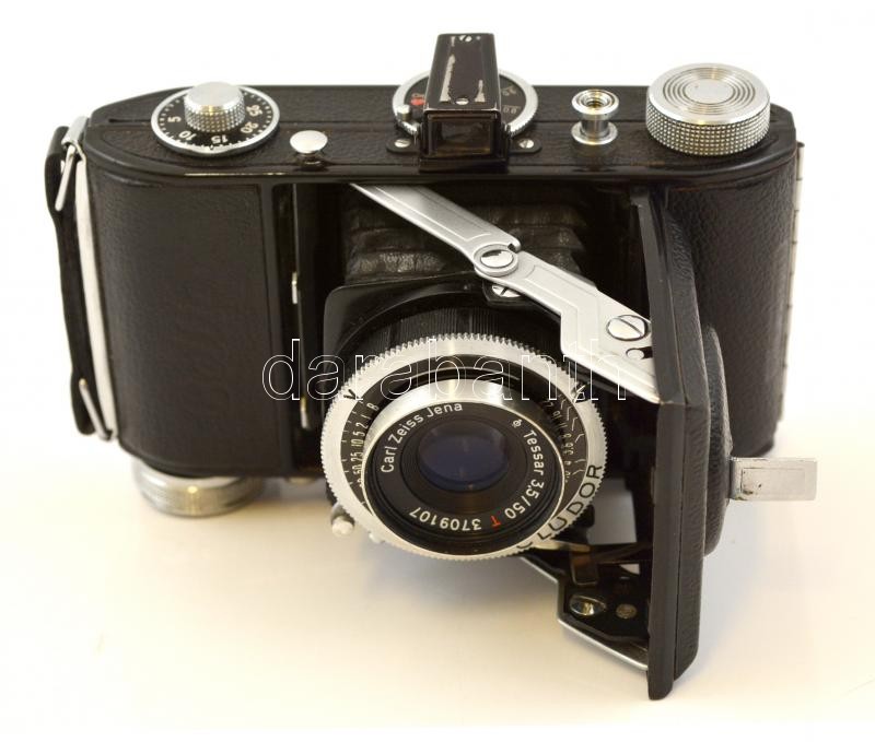 cca 1951 Belca Beltica fényképezőgép Carl Zeiss Jena Tessar objektívvel, szép állapotban, bőr tokban / cca 1951 Belca Beltica folding camera with Carl Zeiss Jena Tessar lens, in nice condition with leather case