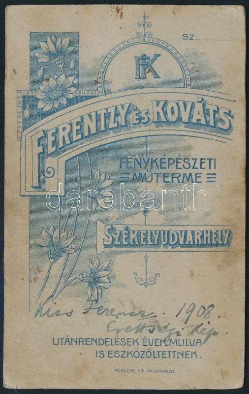 1908 Dr. Kiss Ferenc (1875-1941) anatómia professzor érettségi fotója,... https://www.darabanth.com/de/297-Fernauktion/297.0/Andere-Sammelgebiete/Foto~200022/1908-Dr-Kiss-Ferenc-1875-1941-anatomia-professzor-erettsegi-fotoja-hatoldalon-feliratozott-~II1588332