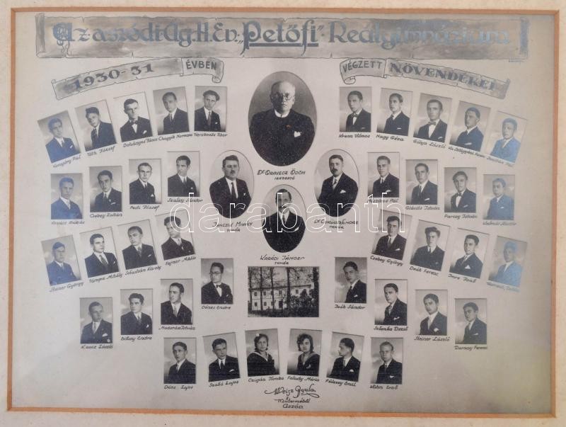 1930 Az aszódi ágostai hitvallású evangélikus Petőfi Reálgimnázium 1930-31- évben végzett növendékei, tablófotó, paszpartuban, üvegezett fa keretben, 16,5×22,5 cm