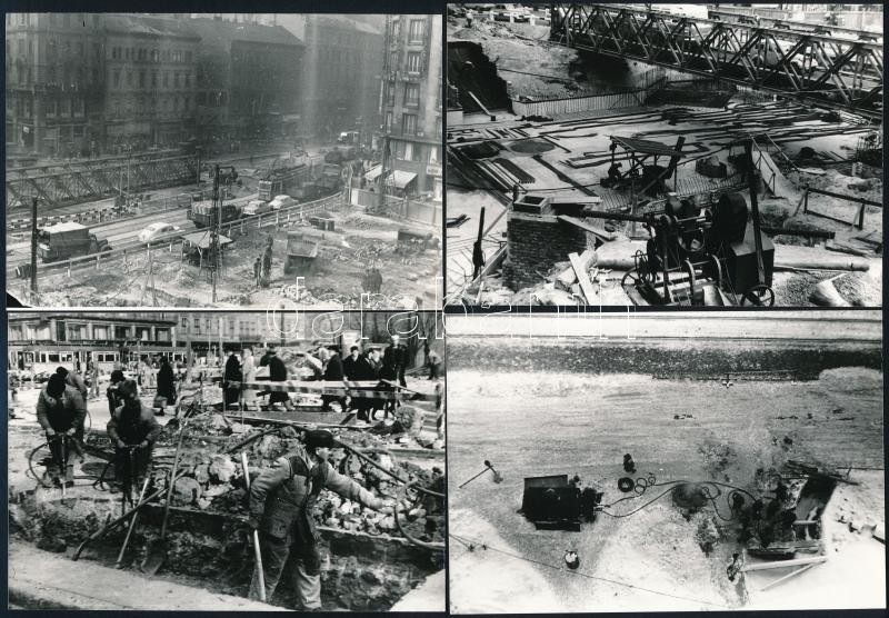 Beschreibung: 1963 Budapest, az Astoria aluljáró felszíni építése, 13 db vintage fotó, 9x13 cm