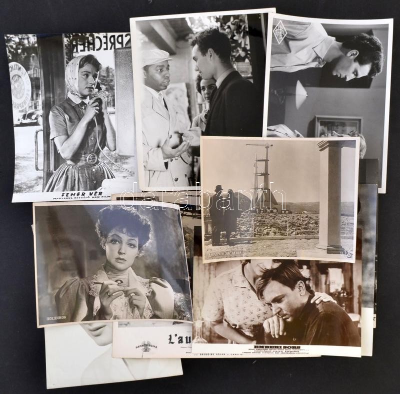 Beschreibung: 9 db nagy méretű filmfotó különböző, nagyrészt külföldi filmekből.