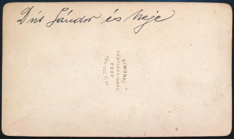 cca 1858 Dús Sándor és neje feliratozott, vizitkártya méretű fényképe,... https://www.darabanth.com/de/297-Fernauktion/297.0/Andere-Sammelgebiete/Foto~200022/cca-1858-Dus-Sandor-es-neje-feliratozott-vizitkartya-meretu-fenykepe-Simonyi-pesti-fenyir~II1584191