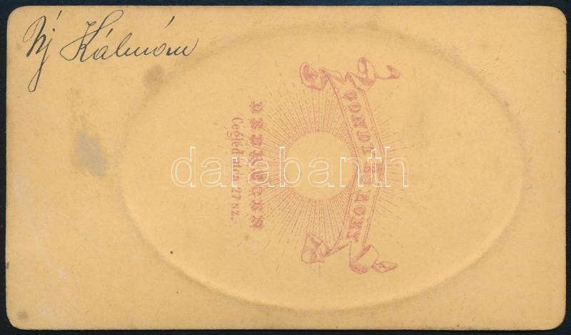Beschreibung: cca 1866 Új Kálmán feliratozott, dombornyomású, porcelánkép utánzatú, vizitkártya méretű fényképe, Gondy és Egey debreceni műterméből, 10,5x6 cm