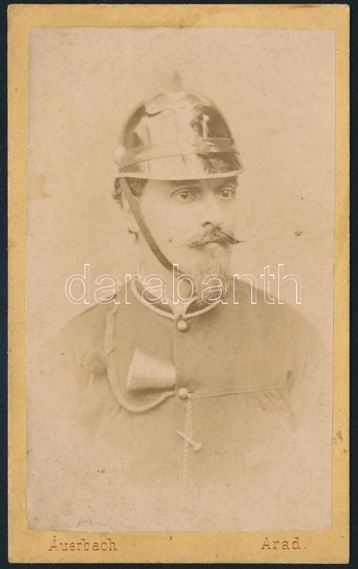 cca 1885 Aradi tűzoltó, kabinetfotó Auerbach Miksa műterméből, 10,5x6,... https://www.darabanth.com/de/297-Fernauktion/297.0/Andere-Sammelgebiete/Foto~200022/cca-1885-Aradi-tuzolto-kabinetfoto-Auerbach-Miksa-mutermebol-10-5x6-5-cm~II1588440
