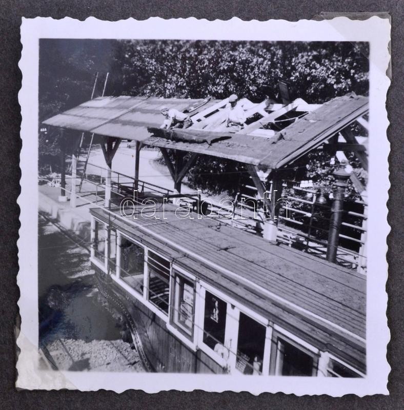 Beschreibung: cca 1940 Budapest, A földalatti városligeti fa állomásának elbontása, fém megálló felépítése, 32 db, egy kivételével 6x6 cm-es fotókkal