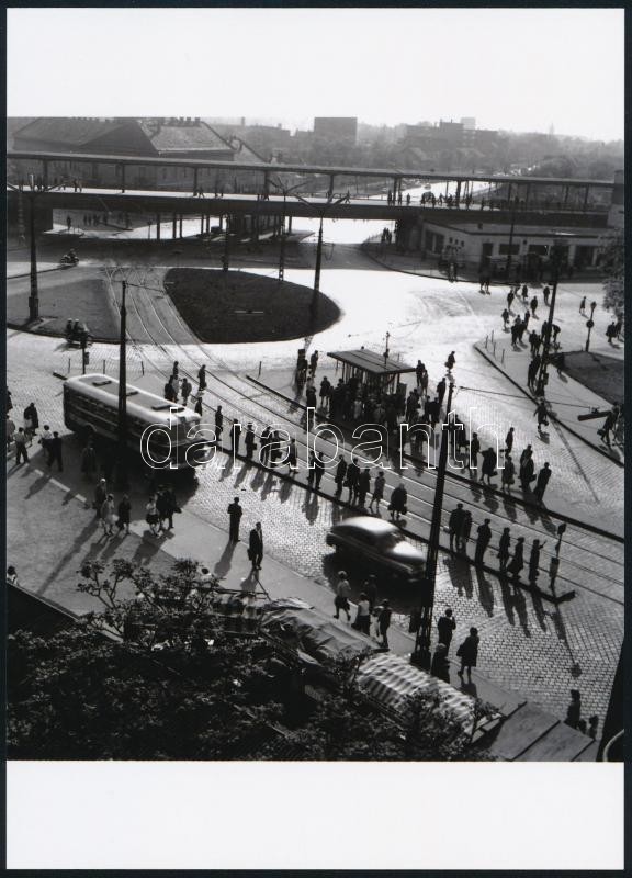 Beschreibung: cca 1965 Autóbusz közlekedés Kőbányán, Keveházi János (?-?) hagyatékában fellelt 3 db vintage negatív mai nagyítása, 13x18 cm