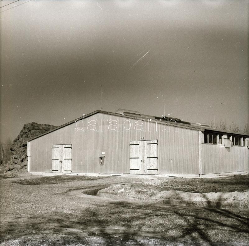 cca 1968 Állattartó csarnok építése, 13 db vintage negatív Sinka Antal (?-?) hagyatékából, aki a velencei AGROKOMPLEX fotósa volt az 1960-as, 1970-es években (ahol tervezték, kivitelezték ezeket a csarnokokat), 6x6 cm