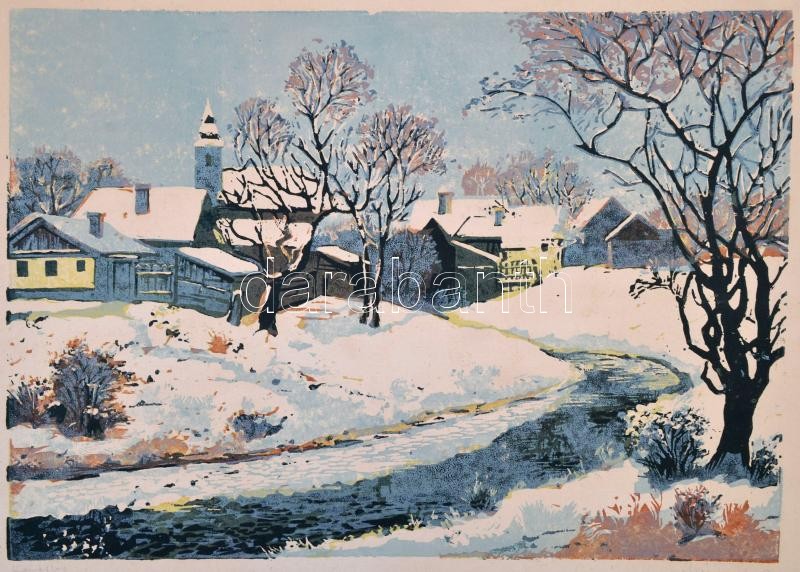 Olvashatatlan jelzéssel: Havas táj. Színes linó, karton, 24×34 cm https://www.darabanth.com/de/297-Fernauktion/297.0/Andere-Sammelgebiete/Gemalde-und-Grafiken~200003/Olvashatatlan-jelzessel-Havas-taj-Szines-lino-karton-24C39734-cm~II1588416