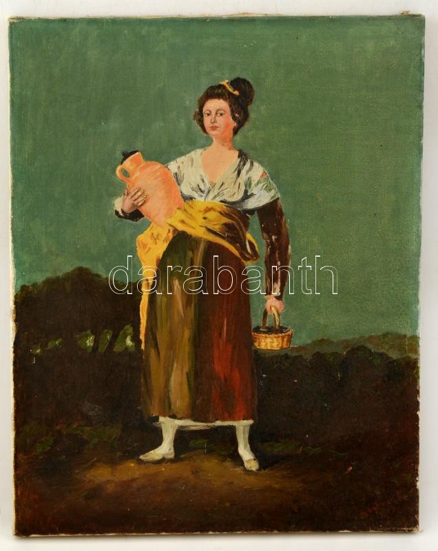 Beschreibung: Schuttner jelzéssel: Nő korsóval. Olaj, vászon, 50×40 cm