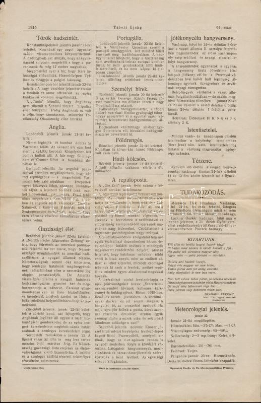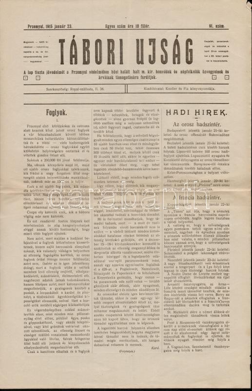 1915 Przemyśl, Tábori Újság, a 23. honvéd gyalogezred által Przemyśl első és második ostroma alatt naponta-kétnaponta megjelentetett újság 91. lapszáma