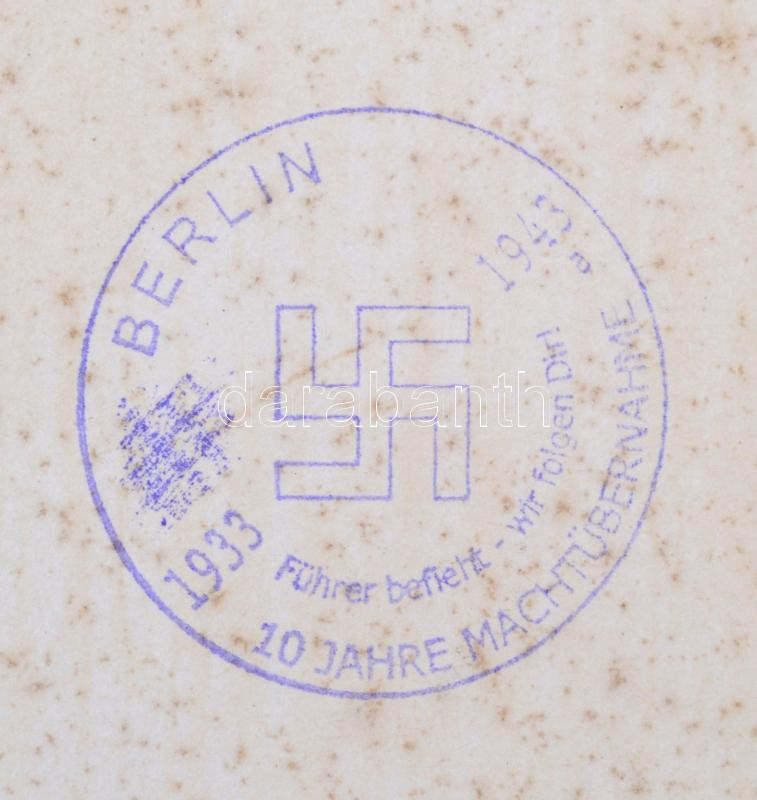 1943 10 éves hatalomátvételi ünnepség, a karzaton német birodalmi vezetőkkel, köztük Joseph Göbbels-szel, nyomtatvány, 12x16 cm./