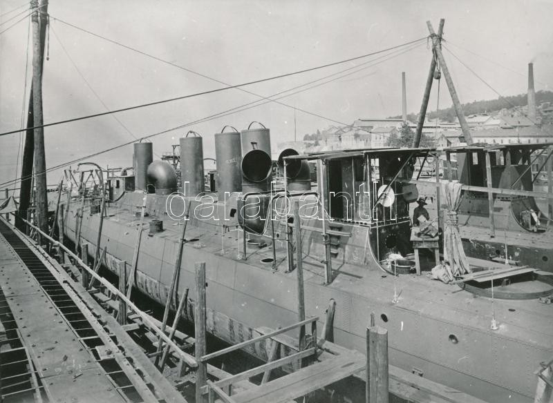 Beschreibung: Huszár osztályú romboló a Ganz Danubius fiumei hajógyárában, eredeti negatívról az 1980-as években előhívott fotó, 13x18 cm