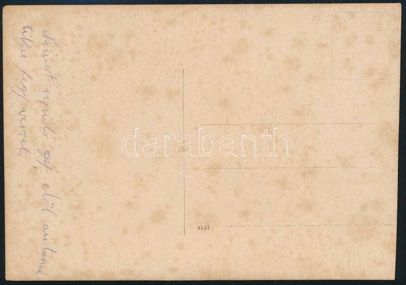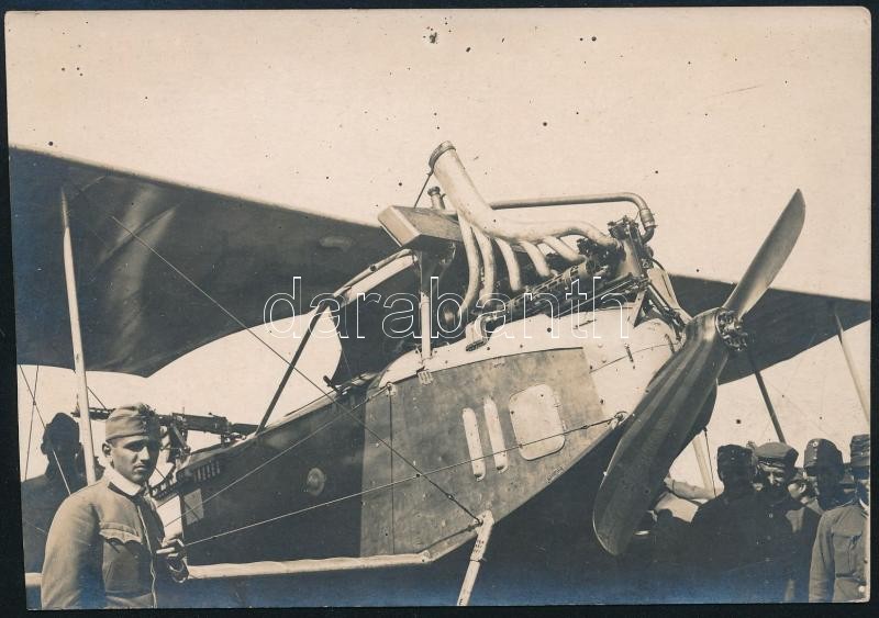 Beschreibung: cca 1917 Albatros típusú repülőgép orrára szerelt automata fegyverrel, hátoldalon feliratozott fotó, 9x13 cm
