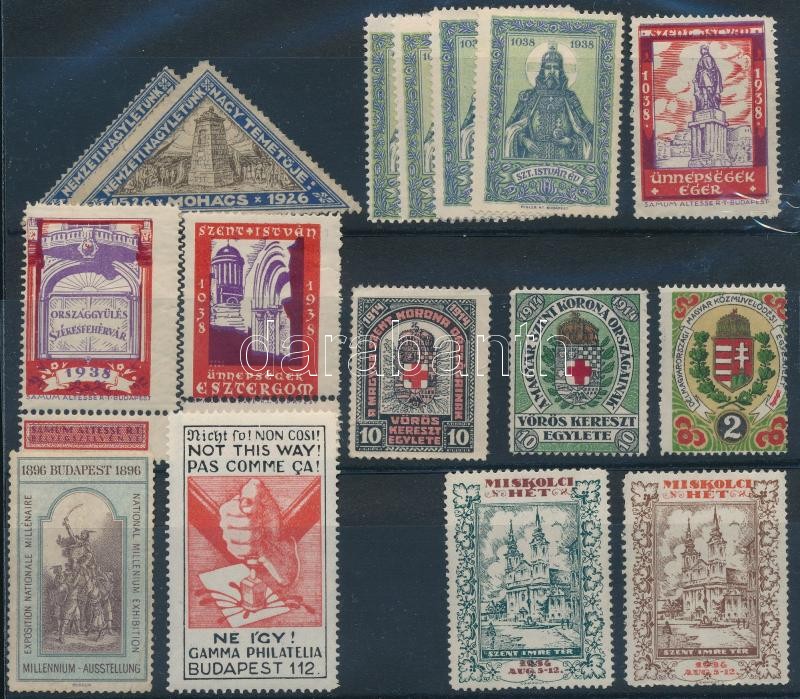 Beschreibung: 16 db magyar levélzáró, közte Mohács, Szt. István év, Vöröskereszt, Miskolci hét