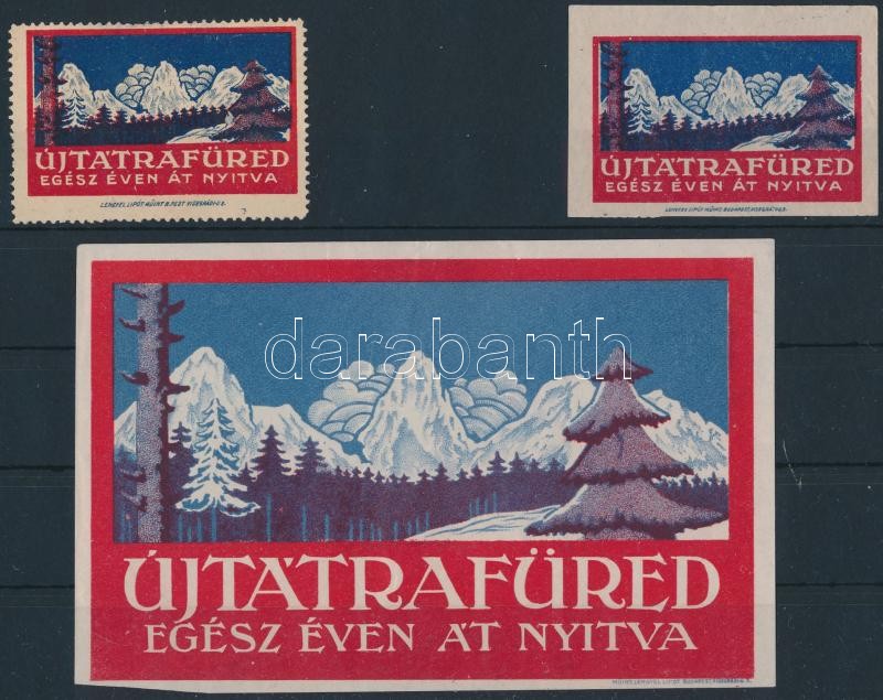 Beschreibung: 1910 Újtátrafüred egész évben nyitva 2 db levélzáró + 1 db 130x80 reklámcímke, színes litho