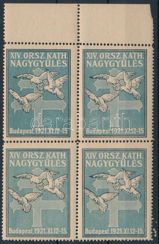 1921 XIV. Országos Katholikus Nagygyűlés ívszéli négyestömb https://www.darabanth.com/de/297-Fernauktion/297.0/Andere-Sammelgebiete/Paraphilatelie~200017/1921-XIV-Orszagos-Katholikus-Nagygyules-ivszeli-negyestomb~II1587665