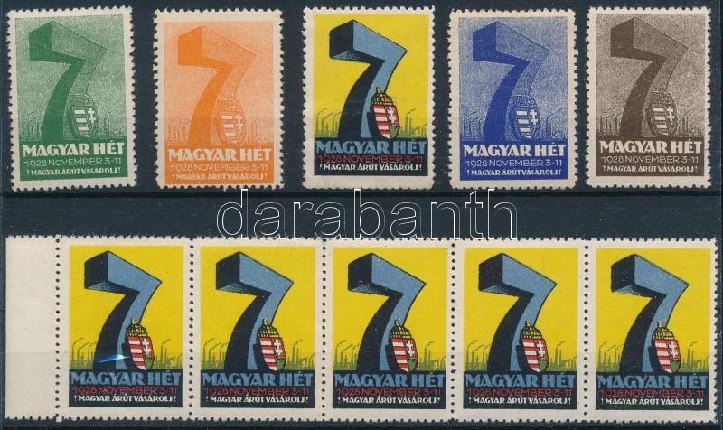 Beschreibung: 1928 Magyar Hét bélyegek, 5 klf szín + 1 db ötöscsík