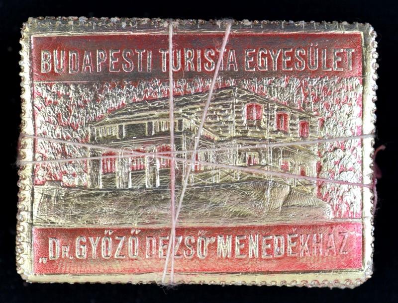 Beschreibung: 1938 Budapesti Turista Egyesület "Dr. György Dezső" menedékház 100 db piros-arany dombornyomásos levélzáró / 100 gold label