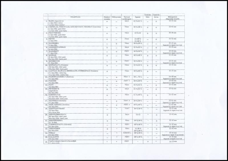 Beschreibung: 1944 Közigazgatási Vöröskereszt bélyegek, hátoldalán táblázat