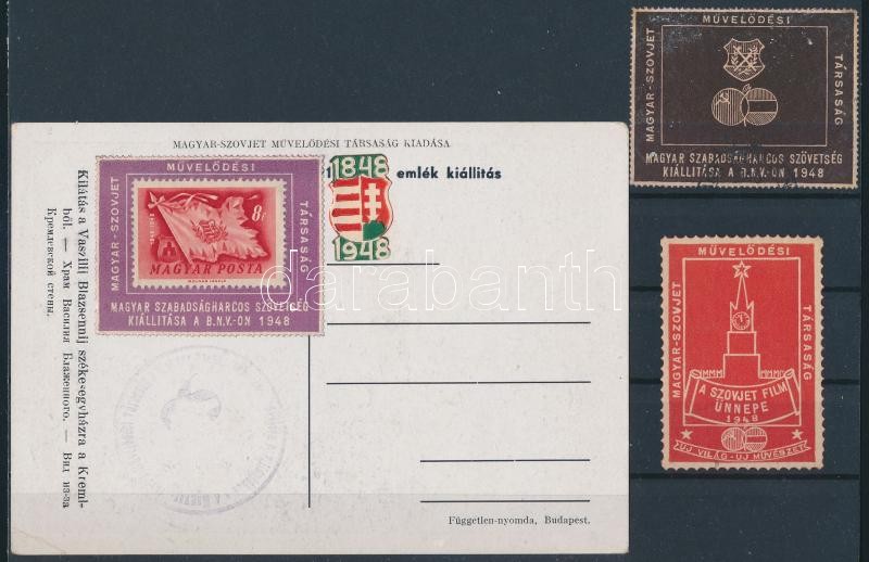 Beschreibung: 1948 Magyar Szabadságharcos Szövetség 2 db levélzáró + képeslap 2 db levélzáróval