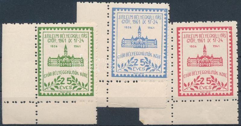 Beschreibung: 1961 Győr Jubileumi Bélyegkiállítás 3 db klf ívsarki levélzáró