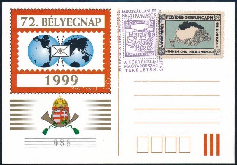 1999 72. Bélyegnap megszállási bélyeggel és bélyegzéssel. Magánkiadás https://www.darabanth.com/de/297-Fernauktion/297.0/Andere-Sammelgebiete/Paraphilatelie~200017/1999-72-Belyegnap-megszallasi-belyeggel-es-belyegzessel-Magankiadas~II1587657