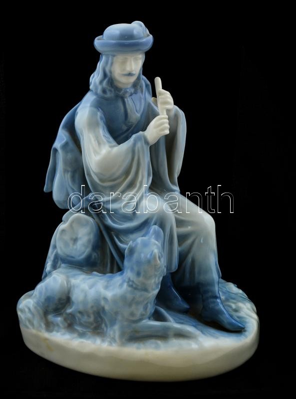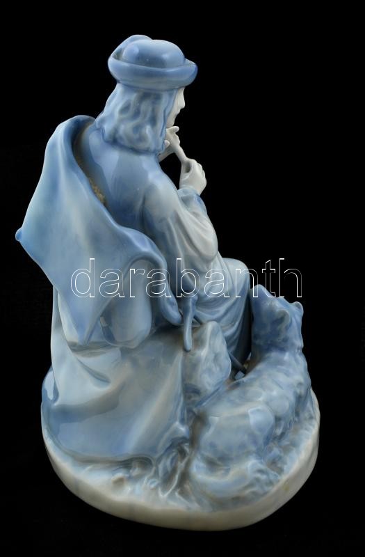Beschreibung: Zsolnay furulyázó pásztor, alap mázzal, jelzett, hibátlan, m:24 cm