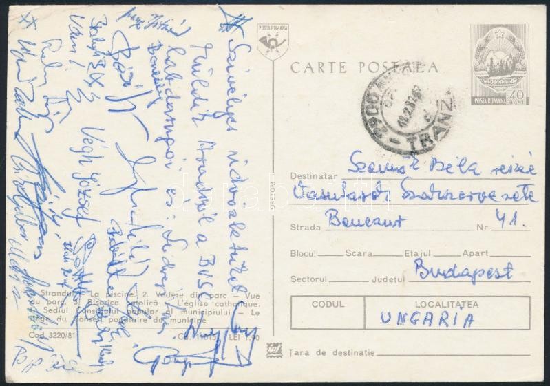 Beschreibung: A BVSC labdarúgóinak Aradról hazaküldött képeslapja aláírásokkal