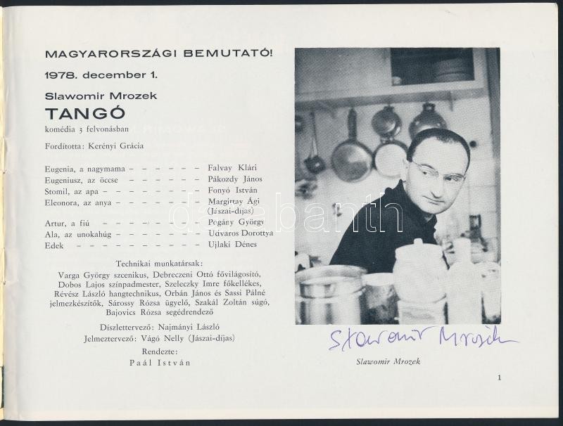 Slawomir Mrozek és Pogány György aláírása színházi prospektusban https://www.darabanth.com/de/297-Fernauktion/297.0/Andere-Sammelgebiete/Signatur~200021/Slawomir-Mrozek-es-Pogany-Gyorgy-alairasa-szinhazi-prospektusban~II1587243