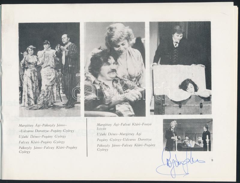 Beschreibung: Slawomir Mrozek és Pogány György aláírása színházi prospektusban