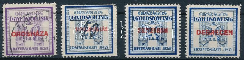 Beschreibung: ~1920 4 db ügyvédi iratmásolási okirati illetékbélyeg (Orosháza, Debrecen, Esztergom, Kisújszállás)