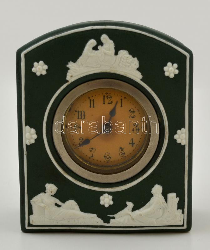 Beschreibung: Aszatli óra, biszkvit porcelán házban plasztikus díszítéssel, kopott, jelzés nélkül, működik, m:12,5 cm