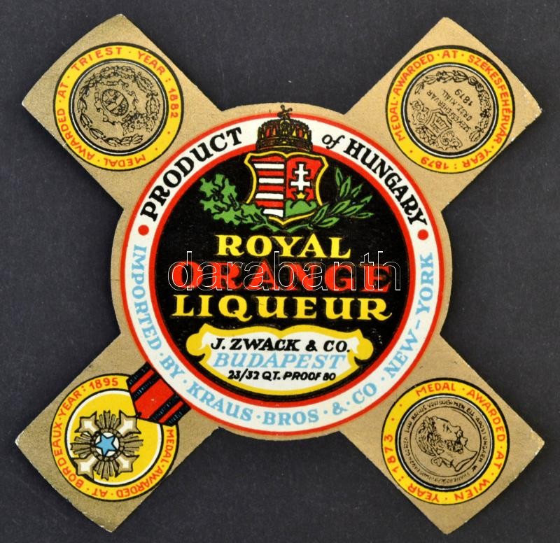 cca 1935 Zwack amerikai exportra gyártott Royal Orange Liquer italcímk... https://www.darabanth.com/de/297-Fernauktion/297.0/Andere-Sammelgebiete/Werbungen~200023/cca-1935-Zwack-amerikai-exportra-gyartott-Royal-Orange-Liquer-italcimke-12-5x12-5-cm~II1582416