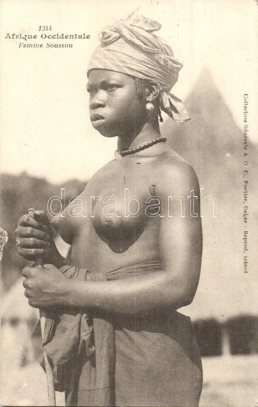 Afrique Occidentale, Femme Soussou / African folklore, Susu woman, nud... https://www.darabanth.com/de/297-Fernauktion/297.0/Ansichtskarten/Folklore~78/Afrique-Occidentale-Femme-Soussou-African-folklore-Susu-woman-nude~II1589608