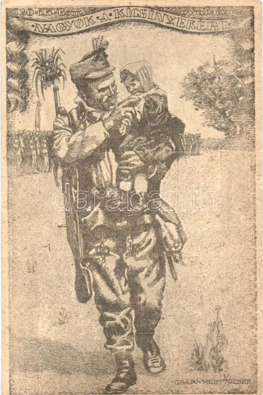 Beschreibung: Nagyok a kicsinyekért. 30. Honvéd Gyalogezred katonai segélylapja az özvegy és árvaalap javára / WWI K.u.K: military charity card s: Csapó Heim József