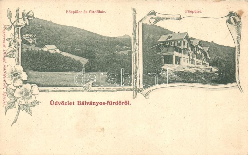 Beschreibung: Bálványos-fürdő, Főépület és fürdőház. Divald / spa. Art Nouveau, floral