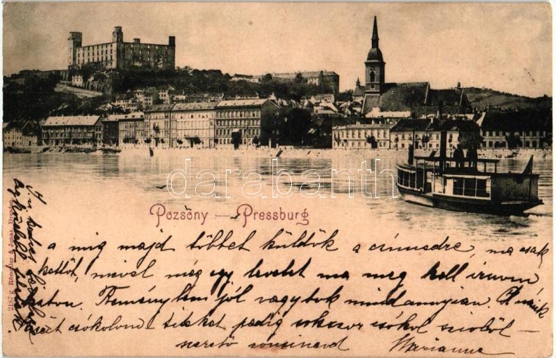 1898 Pozsony, Pressburg, Bratislava; látkép várral és gőzhajóval, Römm... https://www.darabanth.com/de/297-Fernauktion/297.0/Ansichtskarten/Slowakei~9/1898-Pozsony-Pressburg-Bratislava-latkep-varral-es-gozhajoval-Rommler-Jonas-general-v~II1586921