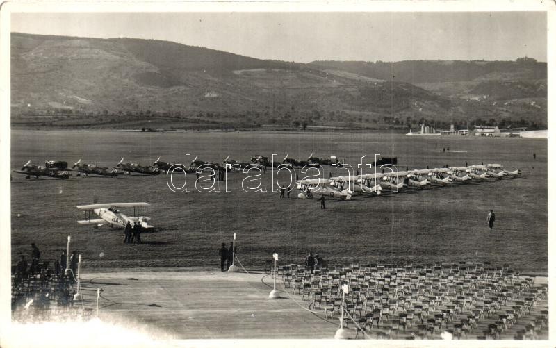 Budaörs, Közforgalmi repülőtér, katonai repülőgépek díszszemléje (EK) https://www.darabanth.com/de/297-Fernauktion/297.0/Ansichtskarten/Ungarn~7/Budaors-Kozforgalmi-repuloter-katonai-repulogepek-diszszemleje-EK~II1587424