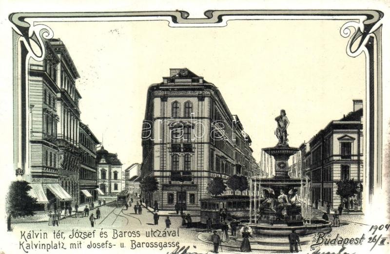 Budapest VIII. Kálvin tér, József és Baross utca. Art Nouveau litho (... https://www.darabanth.com/de/297-Fernauktion/297.0/Ansichtskarten/Ungarn~7/Budapest-VIII-Kalvin-ter-Jozsef-es-Baross-utca-Art-Nouveau-litho-EK~II1589293